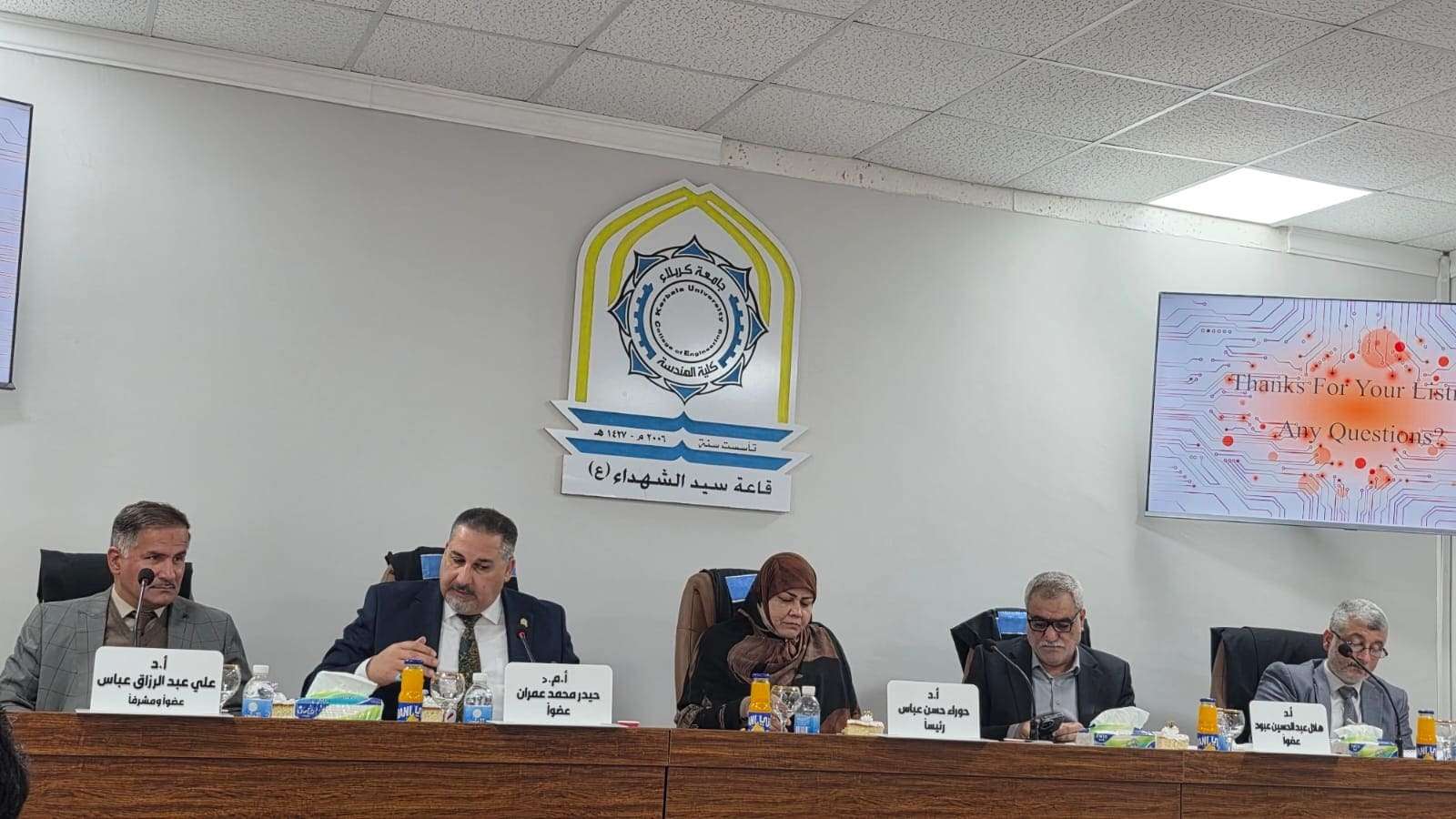 حضر السيد مساعد رئيس الجامعة للشؤون العلمية المحترم عضواً في لجنة المناقشة العلمية لرسالة ماجستير في قسم الهندسة الكهربائية .
